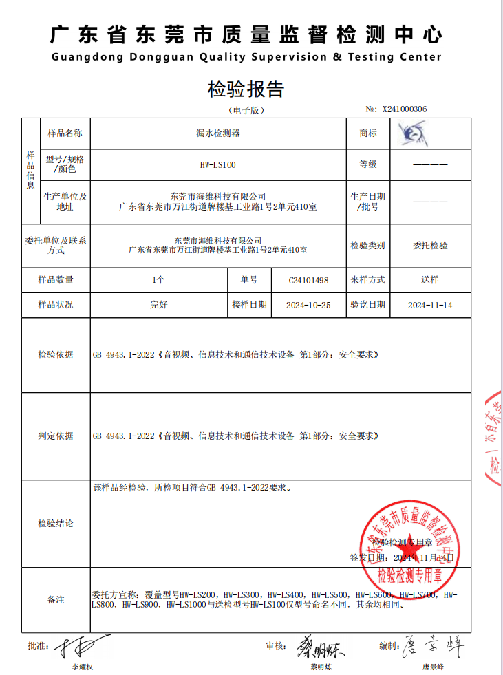 漏水傳感器檢測報告