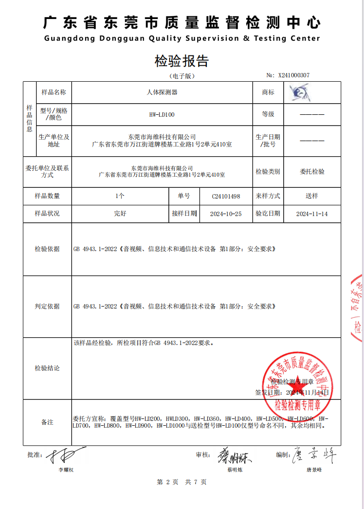 人體探測(cè)器檢測(cè)報(bào)告